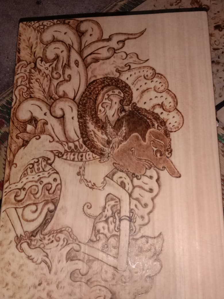 Gambar Raden Antasena media kayu dibordir dengan solder